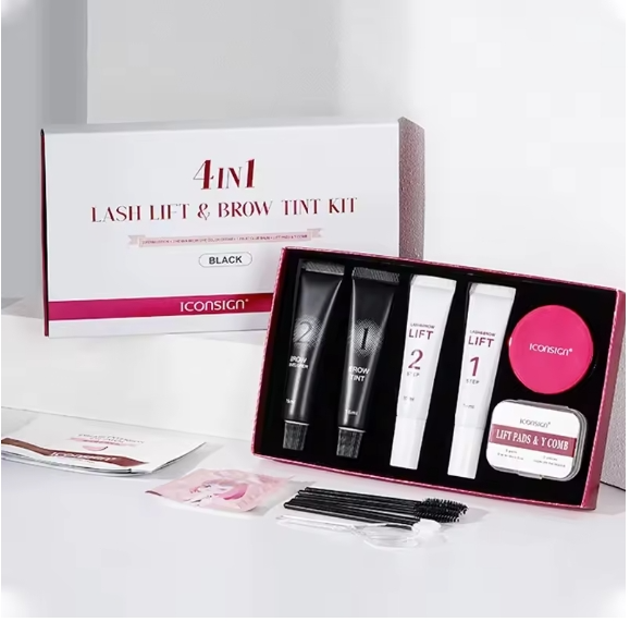 كيت رفع الحواجب (يشمل محلول التقليب، المثبت، الغراء، وربما الصبغة)